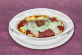 Layers of eggplant covered with marinara sauce, mozzarella and Romano cheeses, baked hot and bubbly.